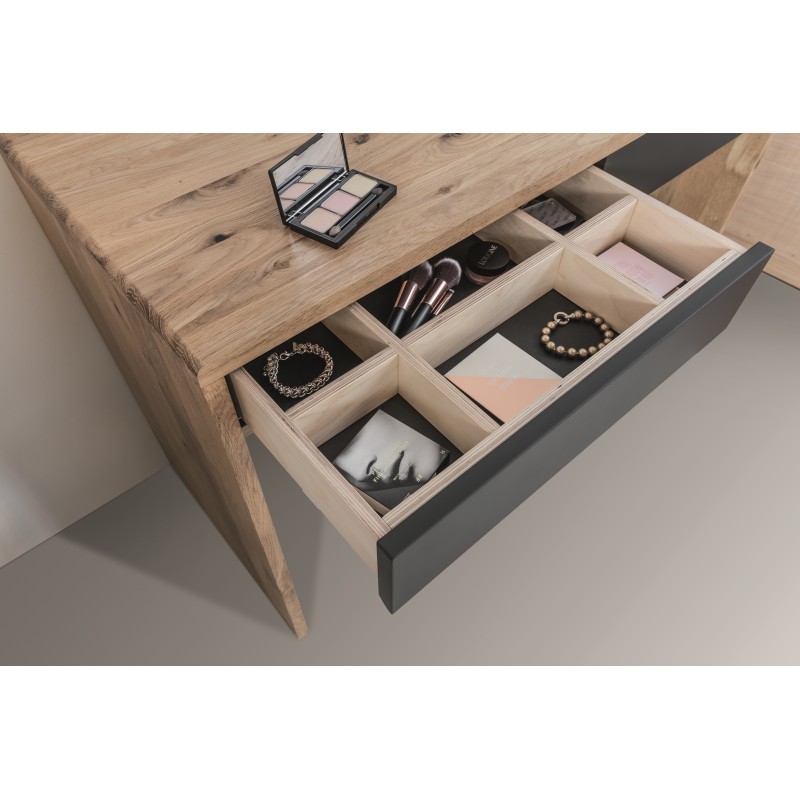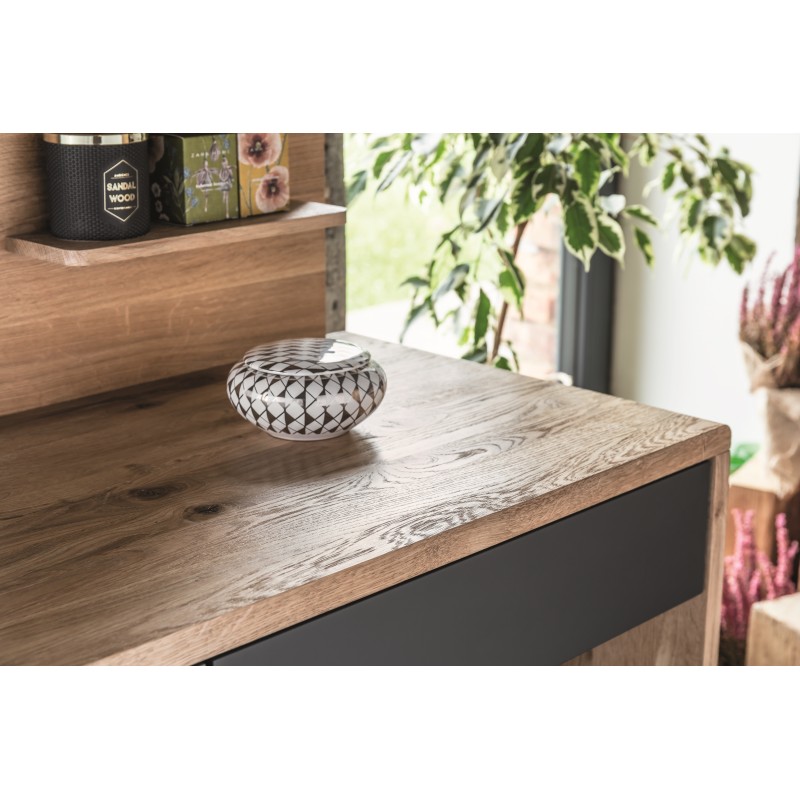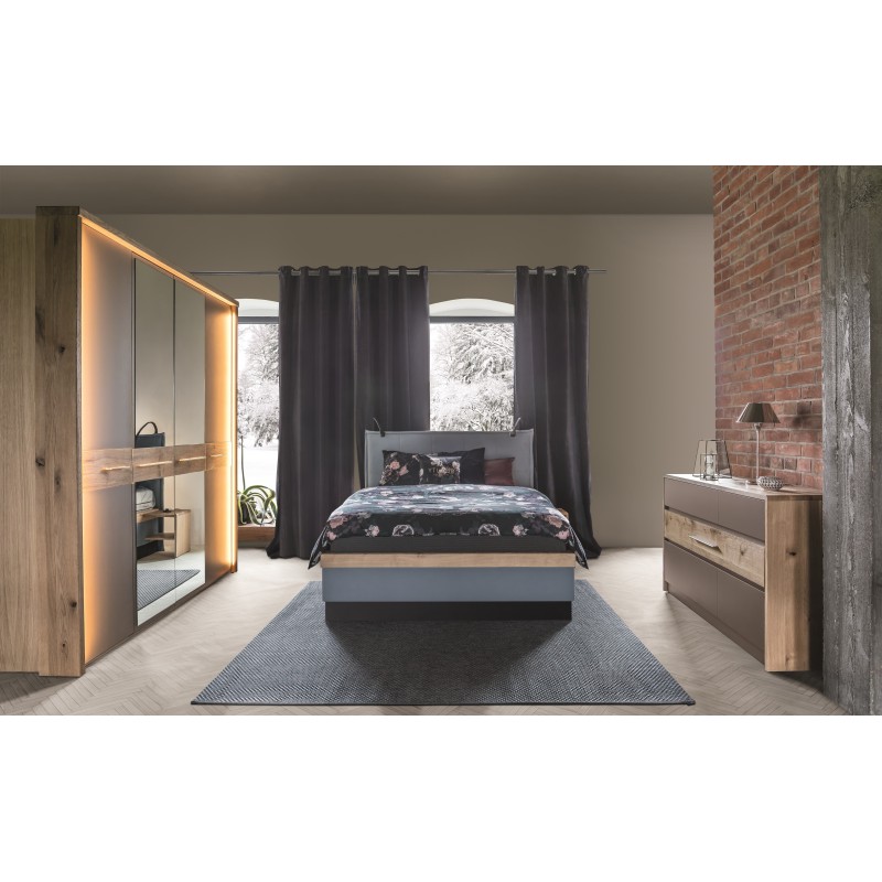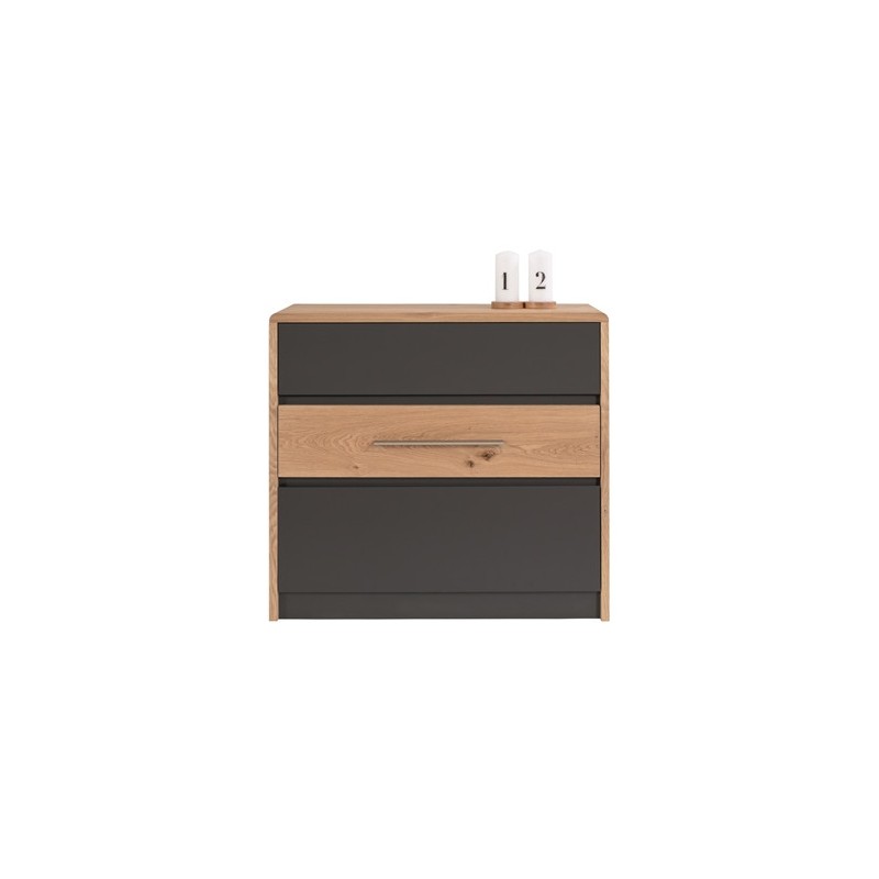 Tivoli Komoda 01 firmy Fameg to nowoczesna i elegancka kolekcja mebli do sypialni z elementami wykonanymi z litego drewna dębowego. Wchodzące w skład kolekcji segmenty wyróżnia nietypowe wykończenie powierzchni drewna dębowego, które są najpierw szczotkowane, a potem woskowane.