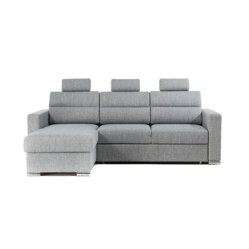 Nowoczesny, wygodny narożnik rozkładany Beneto z pojemnikiem na pościel, ruchomymi zagłówkami, o wymiarach 240 x 170 cm. Dla podwyższenia komfortu wypoczynku w siedzisku zastosowano sprężyny bonellowe oraz specjalistyczną piankę tapicerską, w poduchach oparciowych znajduje się miękkie wypełnienie silikonowe. Dzięki szerokiej ofercie tkanin (ponad 800 tapicerek do wyboru, m.in. brudo-, plamoodporne) możemy dopasować narożnik do swojego wnętrza oraz nadać mu indywidualny charakter. Model Beneto to doskonały narożnik do salonu w nowoczesnym, czy też klasycznym stylu.