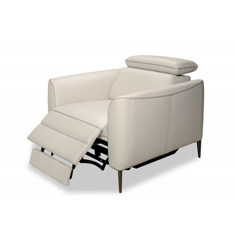 Nowoczesny i wygodny fotel z funkcją relax z kolekcji DNTH-1015 na wysokich nożkach, z regulowanym zagłówkiem i wysuwanym podnóżkiem. Fotel charakteryzuje się trwałością, a powierzchnia idealną miękkością. Swoją niezrównaną wygodę zawdzięcza regulowanym zagłówkom oraz siedziskom wykonanym na bazie poliuretanowej wysokoelastycznej pianki HR (High Resiliense Foam), która daje poczucie idealnej miękkości i elastyczności, zapewniając jednocześnie dłuższą żywotność (sprężystość) siedziska. Meble z kolekcji DNTH-1015 są zaprojektowane z myślą o długotrwałym użytkowaniu, dlatego też użyte materiały są najwyższej jakości. Fotel DNTH-1015 jest wsparty na wysokich, smukłych, metalowych nóżkach, które nie tylko dodają mu charakteru, ale również umożliwiają bezproblemowe utrzymanie czystości.