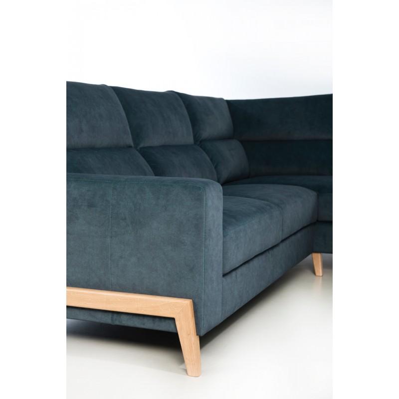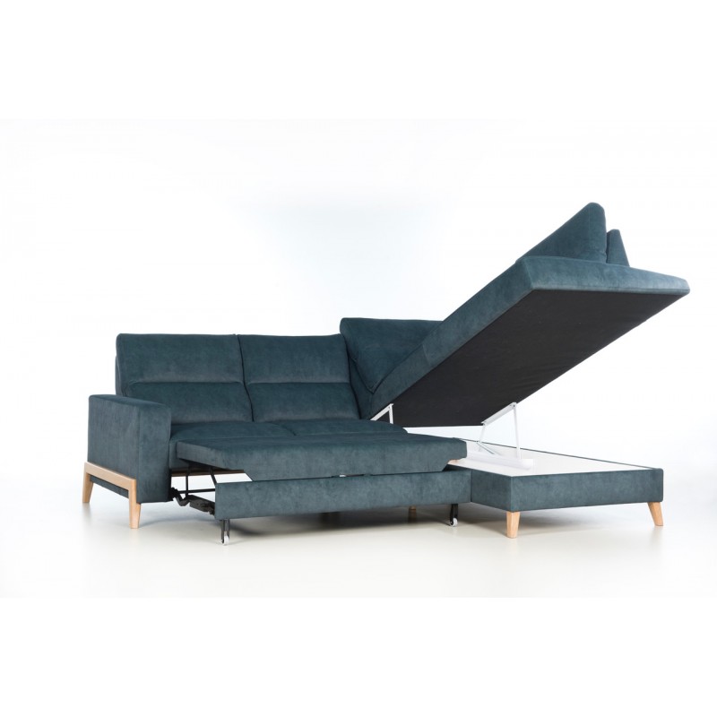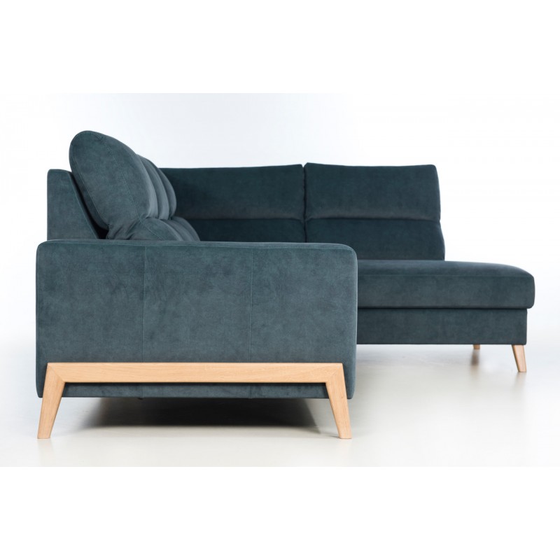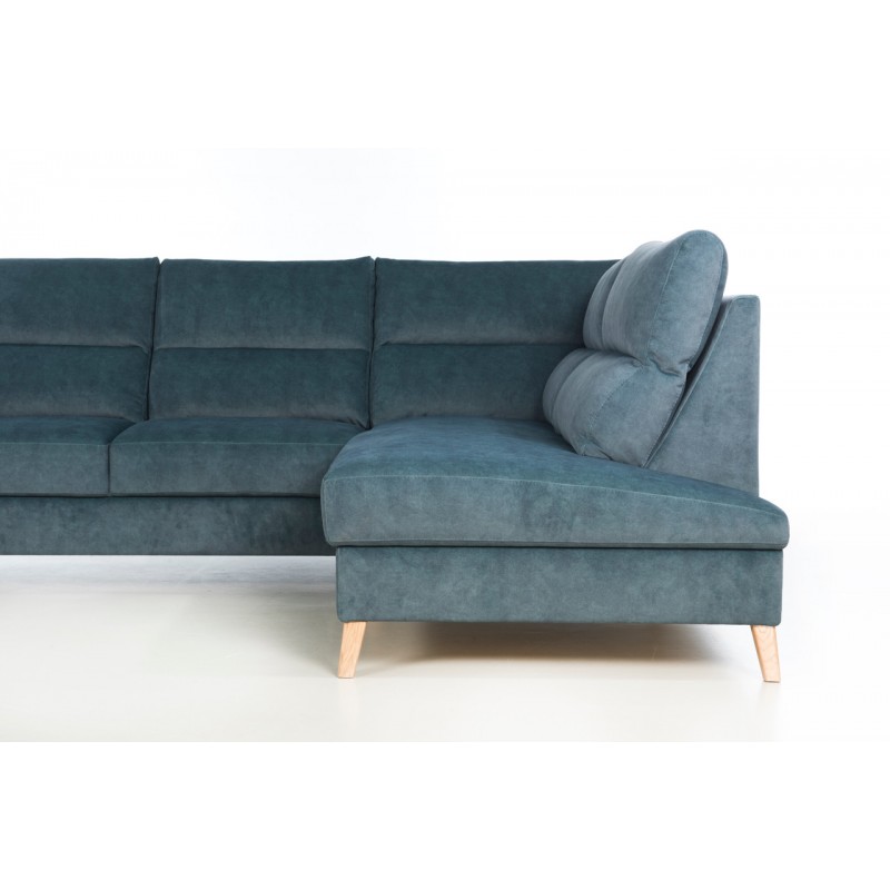 Funkcjonalność narożnika Dubai uzyskano poprzez zastosowanie wygodnej funkcji spania typu „delfin” oraz obszernego pojemnika na pościel, co czyni go nie tylko miejscem relaksu, ale również praktycznym rozwiązaniem dla gości czy miejscem do przechowywania. Dodatkowo, wysokie, drewniane stopki o wysokości 12 cm nie tylko dodają elegancji i lekkości bryle mebla, ale także ułatwiają utrzymanie porządku w przestrzeni pod nim, bez konieczności przesuwania narożnika.