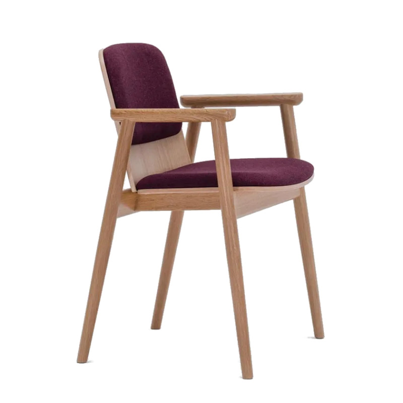 Fotel PROP B-4395 harmonijnie łączy klasyczny styl z minimalistycznym designem. Wykonany z drewna bukowego lub dębowego - do wyboru. Jego konstrukcja opiera się na toczonych drewnianych nogach oraz siedzisku i oparciu wykonanych ze sklejki., Dodatkowe tapicerowanie (ponad 800 tkanin do wyboru, m,in. welwety, welury, plecionki, hydrofobowe, AquaClean, itp.) nadaje meblowi miękkości i podkreśla jego unikalny charakter.