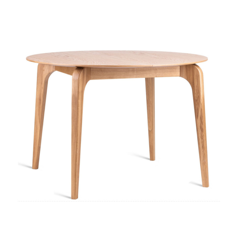 Stół Zuma to wyjątkowy stół dębowy rozkładany, który łączy funkcjonalność i elegancki design. Stół wykonany jest z litego drewna dębowego (nogi) oraz naturalnych fornirów dębowych (blat i wkłady). W wersji podstawowej ma okrągły blat o średnicy 110 cm, a dzięki dwóm wkładkom po 50 cm z łatwością powiększysz go do 210 cm. To idealny stół do jadalni zarówno na co dzień, jak i na większe spotkania rodzinne.