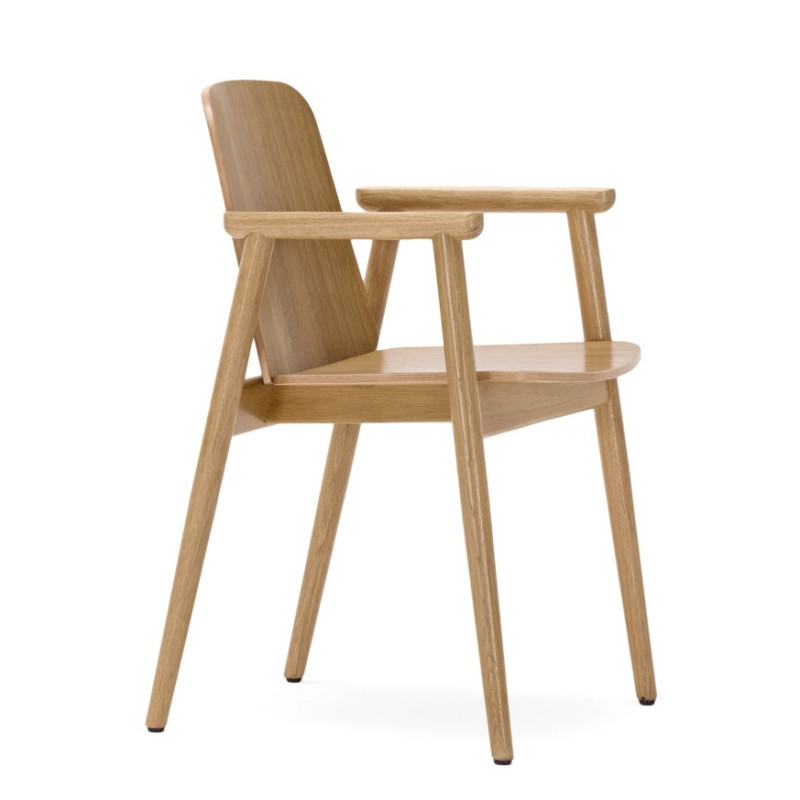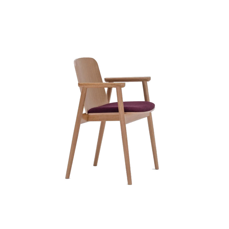 Fotel PROP B-4390 harmonijnie łączy klasyczny styl z minimalistycznym designem. Wykonany z drewna bukowego lub dębowego - do wyboru. Jego konstrukcja opiera się na toczonych drewnianych nogach oraz siedzisku i oparciu wykonanych ze sklejki., Dodatkowe tapicerowanie (ponad 800 tkanin do wyboru, m,in. welwety, welury, plecionki, hydrofobowe, AquaClean, itp.) nadaje meblowi miękkości i podkreśla jego unikalny charakter.