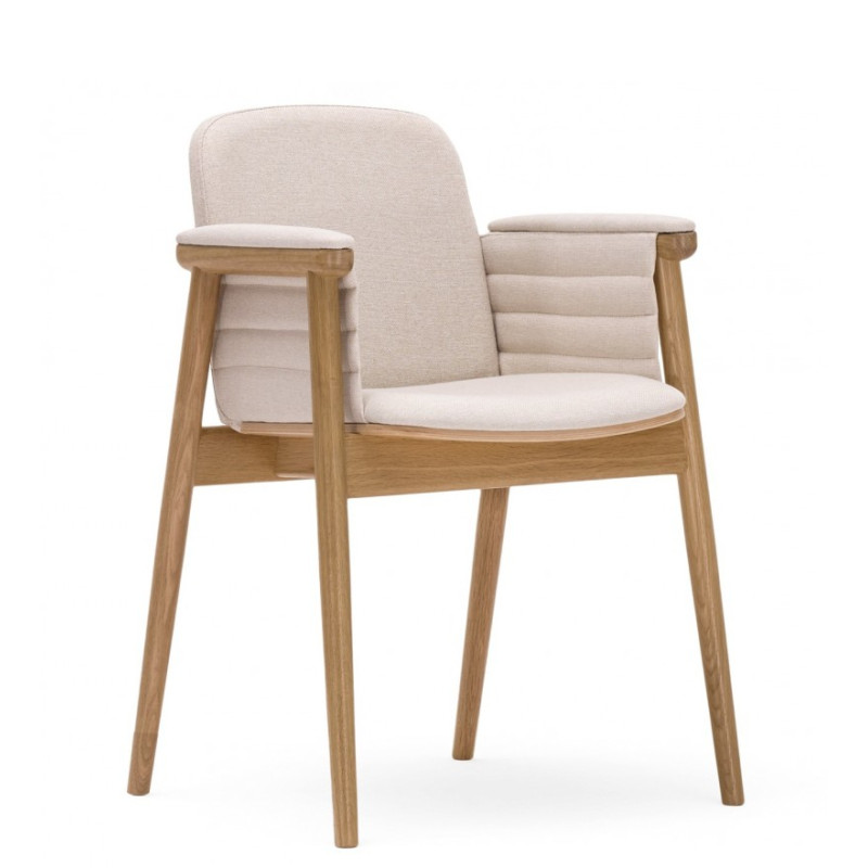 Fotel PROP B-4398 harmonijnie łączy klasyczny styl z minimalistycznym designem. Wykonany z drewna bukowego lub dębowego - do wyboru. Jego konstrukcja opiera się na toczonych drewnianych nogach oraz siedzisku i oparciu wykonanych ze sklejki., Dodatkowe tapicerowanie (ponad 800 tkanin do wyboru, m,in. welwety, welury, plecionki, hydrofobowe, AquaClean, itp.) nadaje meblowi miękkości i podkreśla jego unikalny charakter.